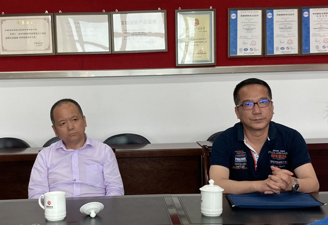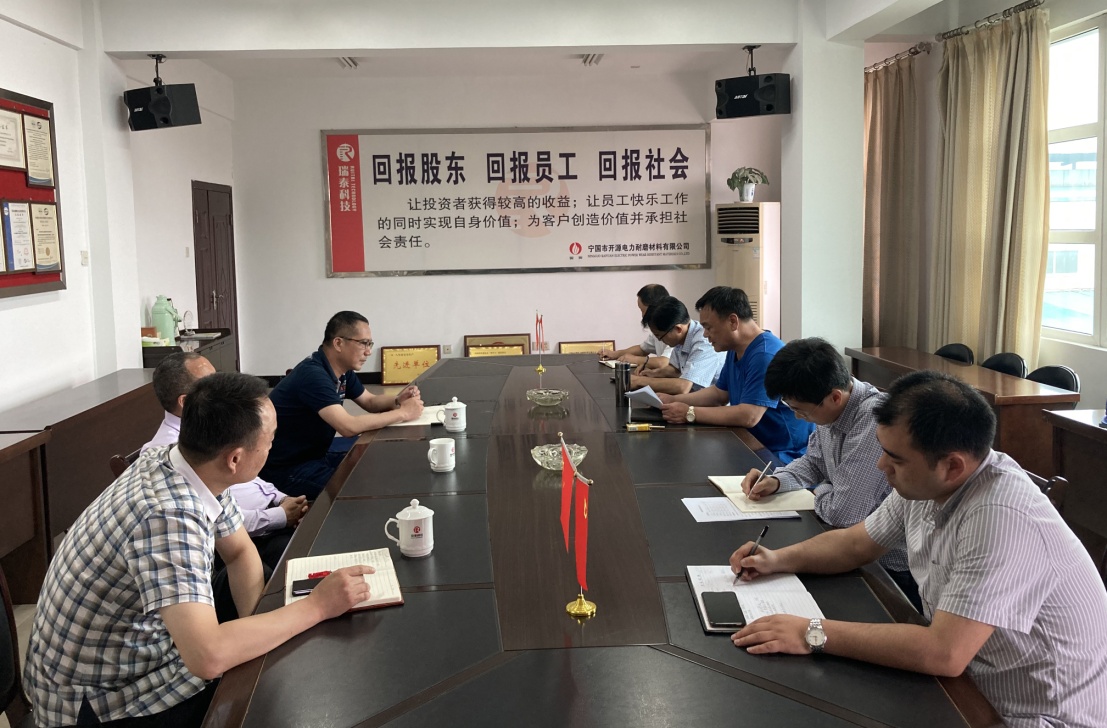 5月15日下午,瑞泰科技黨委書記、董事長曾大凡,瑞泰科技總經(jīng)理陳海山蒞臨開源耐磨檢查指導(dǎo)工作,并召開了座談會,開源耐磨經(jīng)營班子成員、總經(jīng)理助理參加會議。